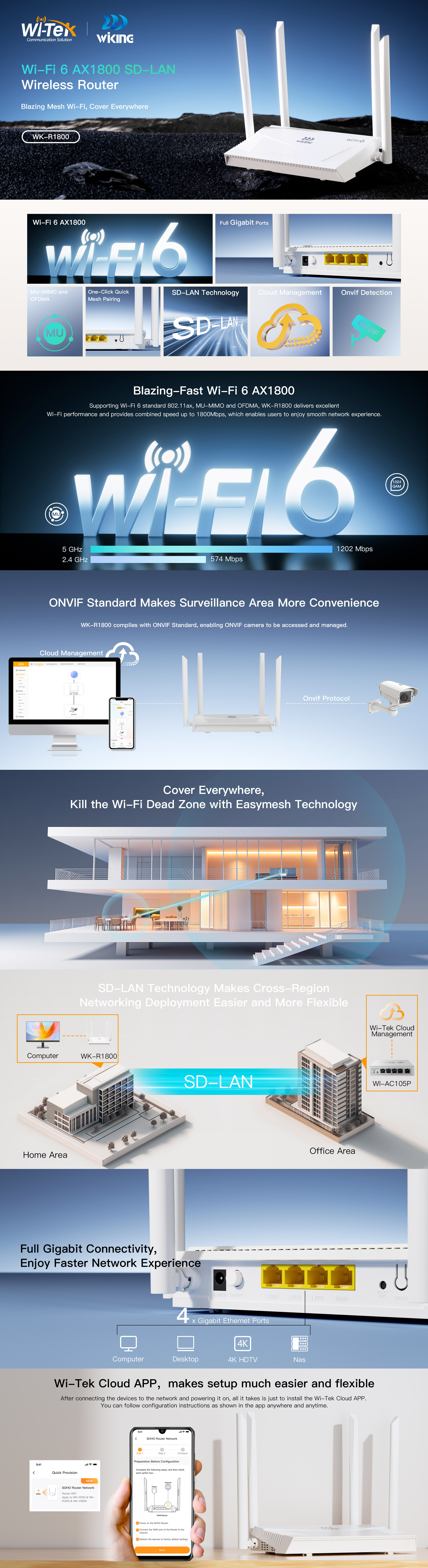 Router WiFi 6 EasyMEsh 2.4/5GHz 1800Mbps 4GE/3LAN Cloud WK-R1800 WIKING