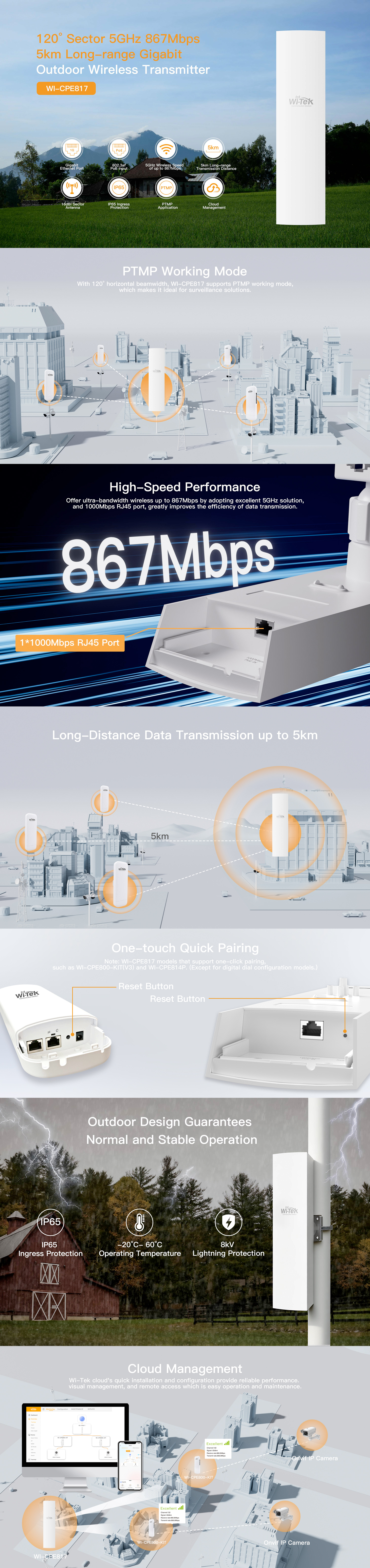 - Transmisor inalámbrico de 5 GHz a 867 Mbps y alcance de 5 km para CCTV